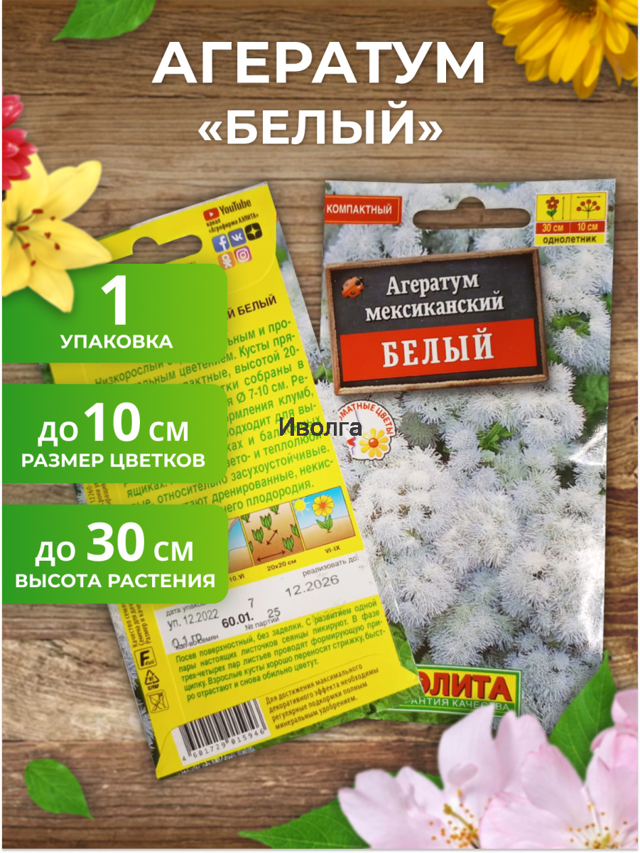 1. Агератум мексиканский "Белый" — 1 шт.